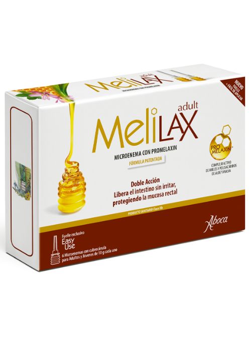 - Aúna una acción evacuante con una acción protectora y en consecuencia lenitiva de la mucosa rectal. La doble acción de MeliLax se obtiene gracias a PROMELAXIN, un complejo de mieles de néctar y de mielada cuidadosamente seleccionadas y elaboradas en función de su contenido en monosacáridos, polisacáridos y melanoidinas, enriquecido con la fracción polisacarídica del Aloe y la Malva.