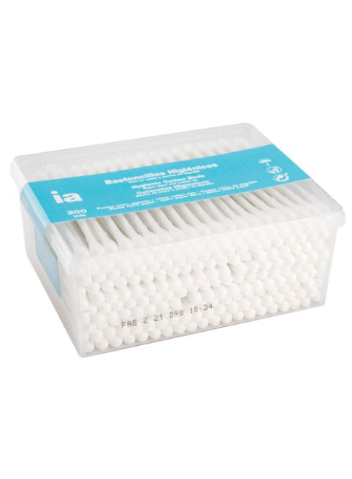 Bastoncillos con palo de papel confeccionados con algodón hidrófilo aportando así una suavidad extrema.