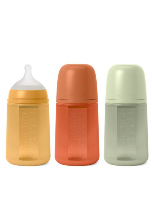 Biberón 240ml con nueva botella de silicona blandita y suave, con tetina Fisiológica Sx Pro de silicona de flujo medio, avalada por la Sociedad Española de Odontopediatría. A partir de 3 meses, tetina de flujo medio.