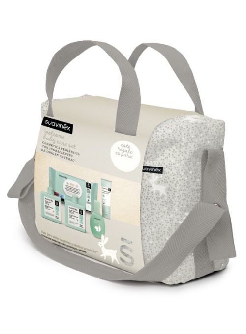 Precioso bolso de paseo de cosmética para bebé recién nacido de Suavinex. Reúne todos los productos imprescindibles para el cuidado de tu bebé.