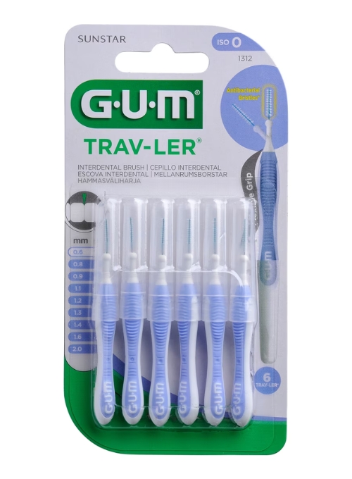El cepillo interdental GUM TRAV-LER es un cepillo cómodo e innovador que te ayudará a limpiar las zonas interdentales. Utiliza tu GUM TRAV-LER al menos una vez al día, preferiblemente después de cenar, para mantener tu boca limpia.
