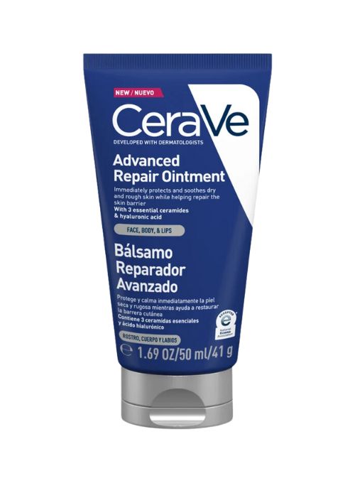 CeraVe Bálsamo Reparador Avanzado está formulado con vaselina, ácido hialurónico y 3 Ceramidas Esenciales. Protege, hidrata y alivia inmediatamente las pieles extremadamente secas, irritadas o agrietadas, mientras ayuda a restaurar la barrera cutánea.