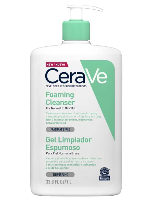 Un limpiador facial con textura de gel a espuma, el cual es ideal para eliminar el exceso de grasa y suciedad. El Gel Limpiador Espumoso de CeraVe contiene 3 ceramidas esenciales, ácido hialurónico y niacinamida para ayudar a preservar la barrera protectora de la piel, hidratar y calmar la piel.