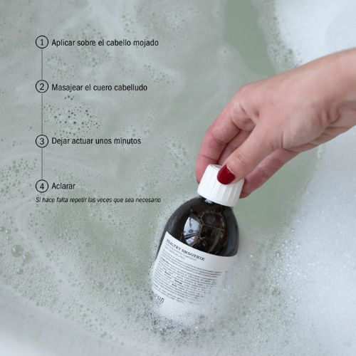 Es perfecto para cabellos con caída o poco volumen, cuero cabelludo con grasa, eczemas, psoriasis, picores. Apto para uso diario. No engrasa ni apelmaza.