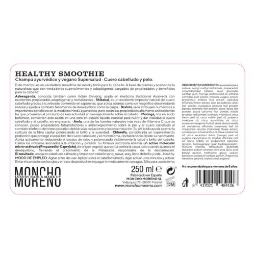 Champú es un verdadero smoothie de salud y brillo para tu cabello. A base de plantas y aceites de la naturaleza que son verdaderos superalimentos y adaptógenos cargados de propiedades y beneficios para tu cabello. Tiene un aroma freso y elaborado con 11 aceites esenciales 100% naturales que aportan un aroma único especialmente seleccionados por sus beneficios en el cabello y en aromaterapia. Induce a disfrutar del frescor de los cítricos y notas picantes del jengibre que capturan los sentidos. Un corazón intenso y cálido de clavo, terminando en una base leñosa de cedro para un efecto relajante y reconfortante.