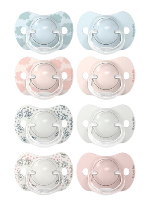 Chupete de forma fisiológica, la más recomendada por Odontopediatras que deja más espacio a la lengua en la cavidad bucal. Es reversible por lo que no hay problema si el bebé le da la vuelta. La nueva tetina Fisiológica SX Pro está pensada para no invadir la cavidad oral y proporcionar al bebé la misma sensación que experimenta en su estado natural/fisiológico cuando no lleva chupete. Creada teniendo en cuenta las particularidades bucodentales del bebé, cuyo maxilar y mandíbula están en pleno desarrollo. La Tetina Suavinex SX Pro está Avalada por la Sociedad Española de Odontopediatría y recomendada por la Asociación Italiana de Especialistas en Ortodoncia.