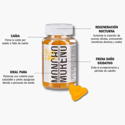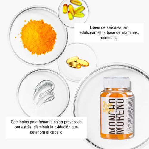 Gominolas 60uds libres de azúcares, sin edulcorantes y con sabor a limón a base de vitaminas, minerales y activos de alta biodisponilidad con beneficios directos en la caída del cabello provocada por ritmos de vida desenfrenados, estrés y falta de descanso. Desarrollado por expertos, Stress No More es una fórmula única con activos que contribuyen a frenar el daño oxidativo lo que ayuda directamente a frenar el deterioro y la caída de nuestro cabello.