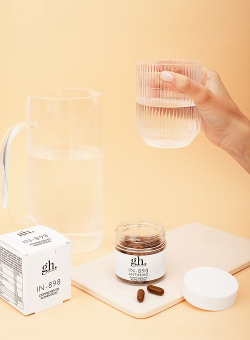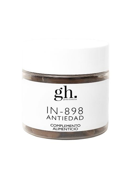 gh IN-898 ANTIEDAD, el complemento alimenticio de Gema Herrerías para subir de nivel en tu rutina de cuidado de la piel. Dale la bienvenida a la cosmética IN-tegrada.