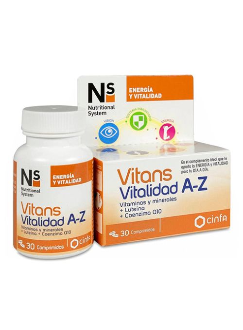 Ns Vitans Vitalidad A-Z está formulado con 13 vitaminas, 11 minerales, luteína y coenzima Q10.