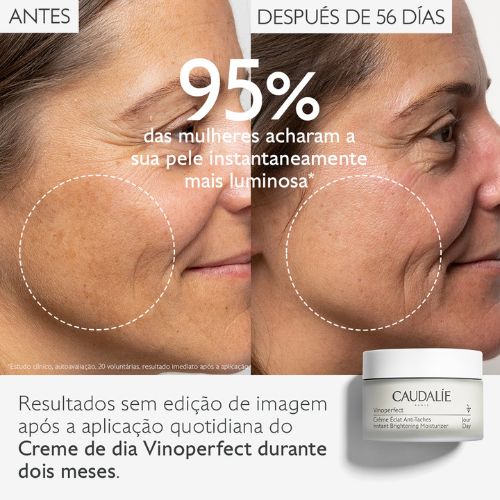 Inspirada en el Sérum Vinoperfect, el antimanchas N°1 en Francia*, la Crema Resplandor Antimanchas Vinoperfect está pensada para todas las mujeres que desean prevenir o atenuar sus manchas pigmentarias, cualquiera que sea su causa: sol, acné, edad, embarazo.