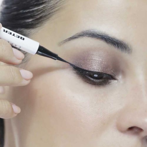 Trazo preciso y rápido. De gran cobertura e intensidad su punta biselada te permite dibujar dos trazos distintos: fino o más grueso, como más te guste. Es preferible que lo hagas después de aplicar la sombra y antes de la máscara de pestañas. De gran adhesión se seca rápidamente. Larga duración: + 12 horas. Resistente al agua. Sin parabenes.