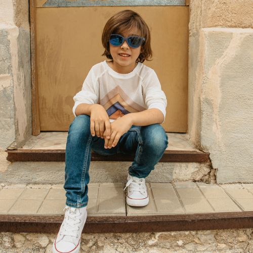 100% protección UVB y UVA. Incluyen una funda textil de regalo para protegerlas o mantenerlas en perfecto estado de conservación, contra las agresiones externas. Con patillas de material flexible y ligero. Con cinta de sujeción ajustable para que no se caigan. Una etapa en la que los niños empiezan a correr y es más probable que se les caigan. Por eso es muy importante elegir una montura que se adapte perfectamente a su cara, sin dejar hueco entre la nariz y la montura. *Cumple con EN ISO 12312-1:2013+A1:2015.
