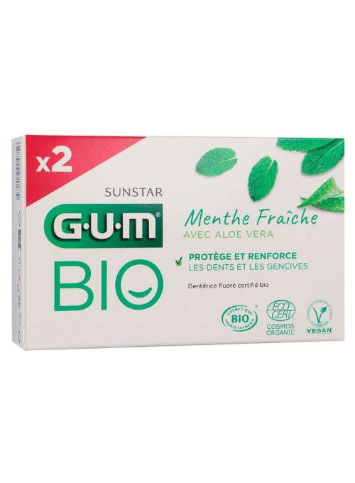 Con un 99% de ingredientes naturales e ingredientes orgánicos, la pasta de dientes GUM BIO es extrasuave con dientes y encías. Añadimos flúor a la formulación, según las recomendaciones de los expertos en salud bucal y la Federación Europea de Periodoncia (EFP), para ayudar a fortalecer y proteger el esmalte contra las caries. La eficacia de nuestra pasta de dientes en el cuidado de las encías y los dientes ha sido validada y cumple con los mismos criterios que otras pastas dentífricas GUM.