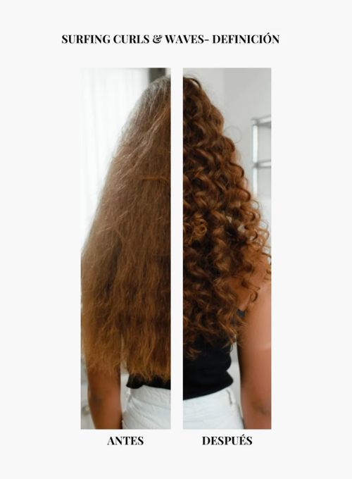 - Sobre el cabello limpio y húmedo aplicar la cantidad necesaria de Surfing Curls & Waves para potenciar tus rizos u ondas naturales.