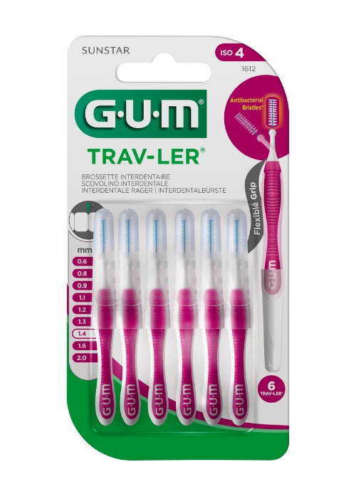 El cepillo interdental GUM TRAV-LER es un cepillo cómodo e innovador que te ayudará a limpiar las zonas interdentales. Utiliza tu GUM TRAV-LER al menos una vez al día, preferiblemente después de cenar, para mantener tu boca limpia.