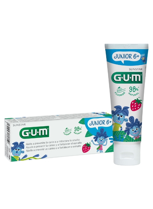 La pasta de dientes en formato gel GUM JUNIOR se adapta perfectamente a niños a partir de 6 años. Este dentífrico se ha desarrollado para ofrecer una máxima protección contra las caries.