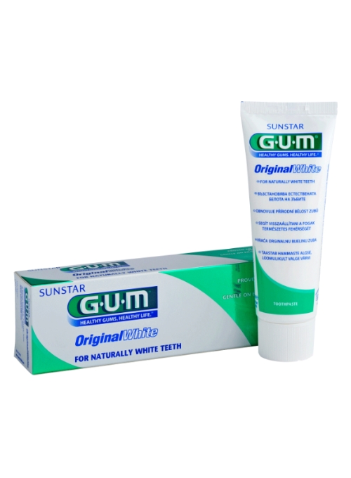 La pasta de dientes GUM Original White es ideal para el uso diario. Esta pasta de dientes limpia los dientes con suavidad, al mismo tiempo que fortalece los dientes y las encías.