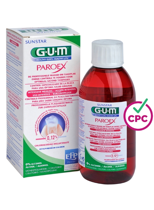 El colutorio de tratamiento GUM PAROEX 0,12% es una solución a los problemas de encías. Este colutorio tiene sabor a menta fresca y ayuda a reducir la placa, aliviar las encías sensibles y mantener las encías sanas. Es ideal para utilizarlo después de una cirugía o de una extracción dental.