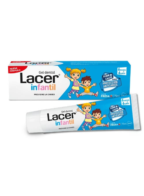 Los niños se encuentran en la edad de mayor incidencia de caries dental. Lacer Infantil Gel dental ha sido formulado para el cuidado bucodental en niños y niñas entre 6 meses y 6 años de edad. Su fórmula con Flúor más Calcio actúa como escudo protector contra la caries. Protege el esmalte dental. No contiene conservantes ni gluten. Con agradable sabor a fresa.