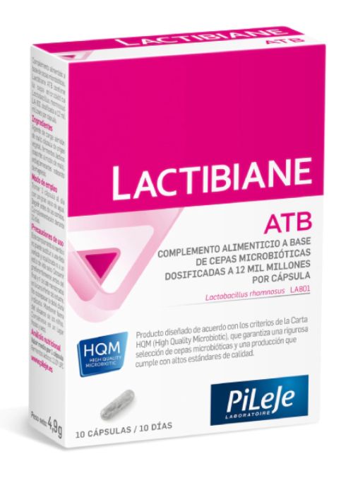 Lactibiane ATB es un complemento alimenticio a base de Lactobacillus rhamnosus LA801, una cepa probiótica dosificada a 12 000 millones por cápsula. Este probiótico tiene como objetivo prevenir y/o tratar la diarrea asociada a la toma de antibióticos.