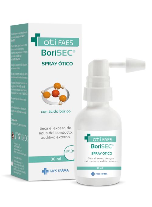 Otifaes BoriSEC es un spray ótico que ayuda a secar el conducto auditivo externo y alivia la sensación del oído tapado debido al agua que puede acumularse durante la higiene diaria, en la práctica de deportes acuáticos o tras permanecer en ambientes húmedos.