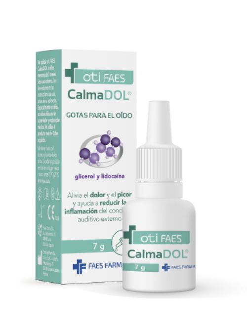 Otifaes CalmaDOL gotas para el oído es un producto sanitario que contiene glicerol y lidocaína al 0,5% y está indicado en el alivio del dolor y picor del conducto auditivo externo. Su acción se basa en las propiedades osmóticas de su componente principal, el glicerol. El glicerol se utiliza en gotas óticas principalmente por dos de sus características: