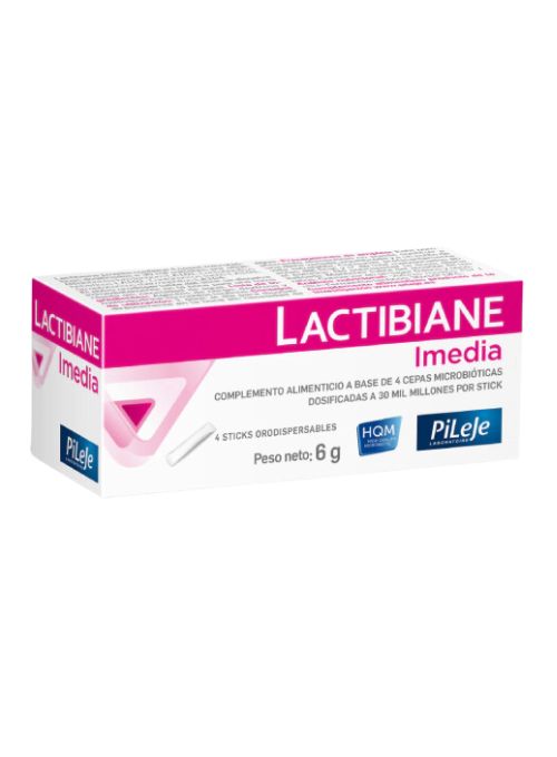 Lactibiane Imedia es un complemento alimentario a base de 4 cepas microbióticas dosificadas a 30 000 millones por sobre orodispersable:
