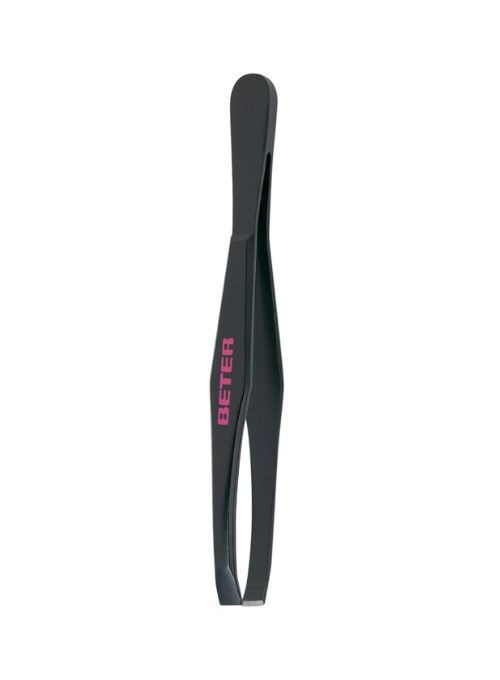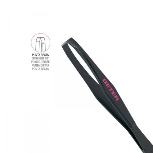 La auténtica y genuina pinza Beter negra, inconfundible e inimitable. Su punta recta permite una sujeción fácil y firme del pelo a retirar. Máxima precisión y eficacia.