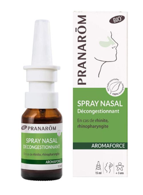 El spray nasal Aromaforce es una solución hipertónica asociada a aceites esenciales 100% biológicos. Los aceites esenciales de mandravasarotra, de abeto negro, de eucalipto radiata y de geranio son conocidos por sus propiedades curativas, refrescantes y balsámicas.