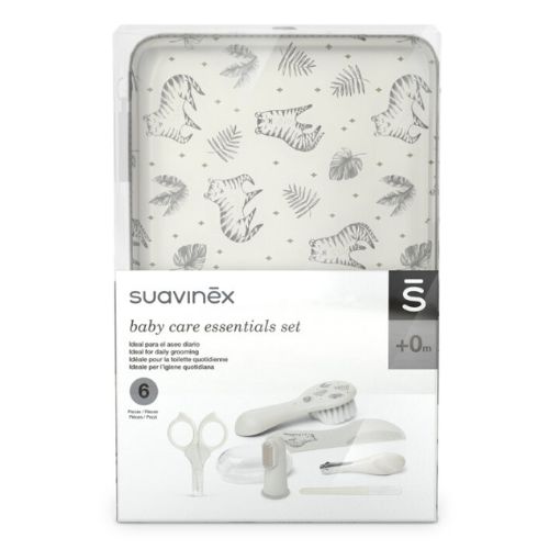 Set neceser Suavinex para bebés con 6 productos esenciales para facilitar el cuidado diario y delicado que el bebé necesita desde el primer día. Para bebés a partir de 6 meses. Contiene:
