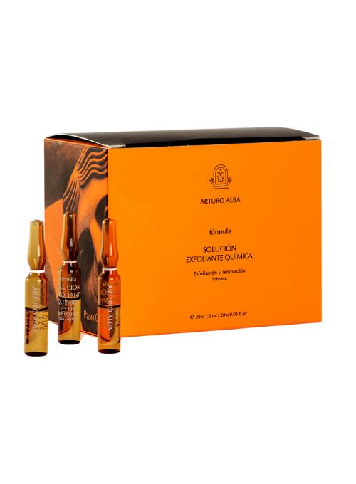Ampollas de solución ácida exfoliante con acción renovadora del estrato córneo. Su uso frecuente de forma semanal favorece una piel con una textura homogénea. Su acción despigmentante es eficaz para todo tipo de manchas instaladas. Eficaz como tratamiento antiarrugas e iluminador.