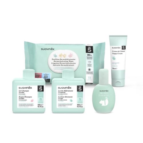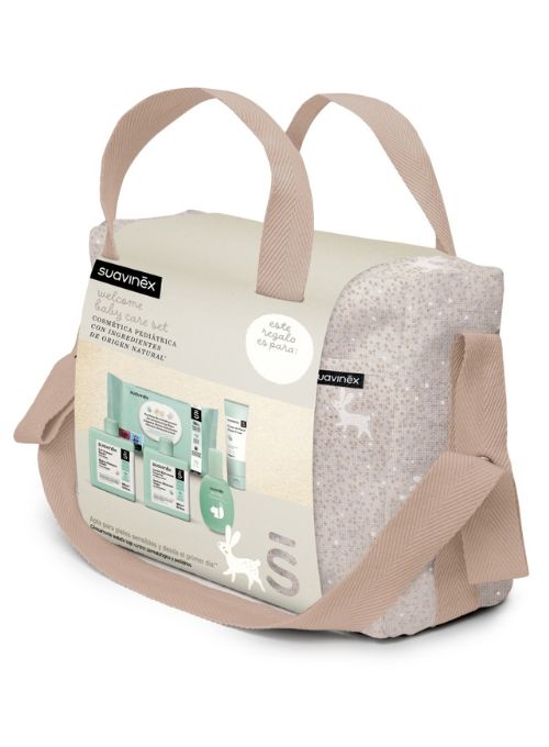 Precioso bolso de paseo de cosmética para bebé recién nacido de Suavinex. Reúne todos los productos imprescindibles para el cuidado de tu bebé.