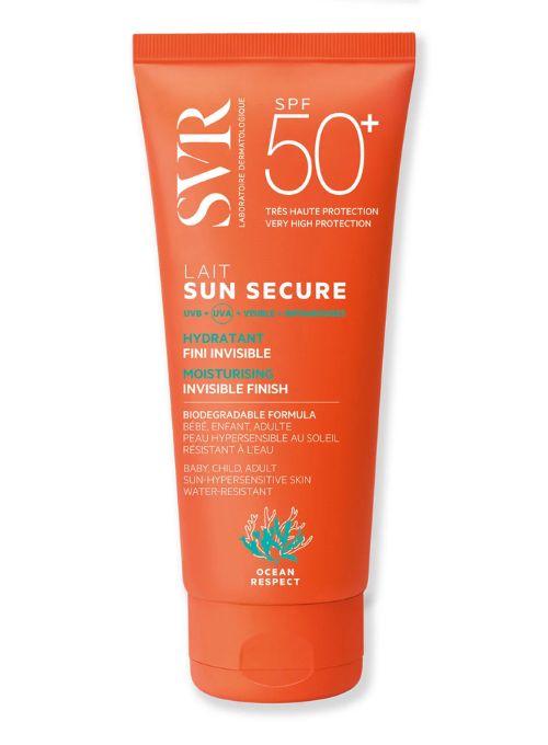 SUN SECURE Lait SPF50+ nos da una protección dermatológica muy alta que nos protege frente a todo tipo de rayos solares, gracias a la nueva combinación de filtros patentada que respeta al medio marino ¡y todo ello sin comprometer su agradable textura!