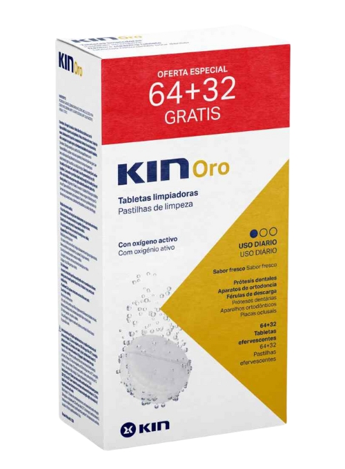 Tabletas limpiadoras para ortodoncias extraibles, férulas de descarga y prótesis dentales.
