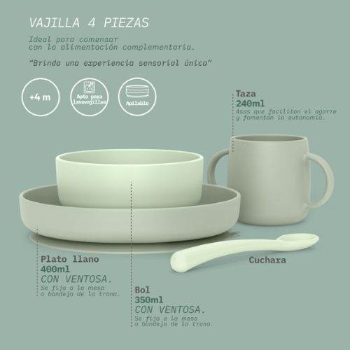 Ideal para comenzar con la alimentación complementaria. Componentes de la nueva vajilla: